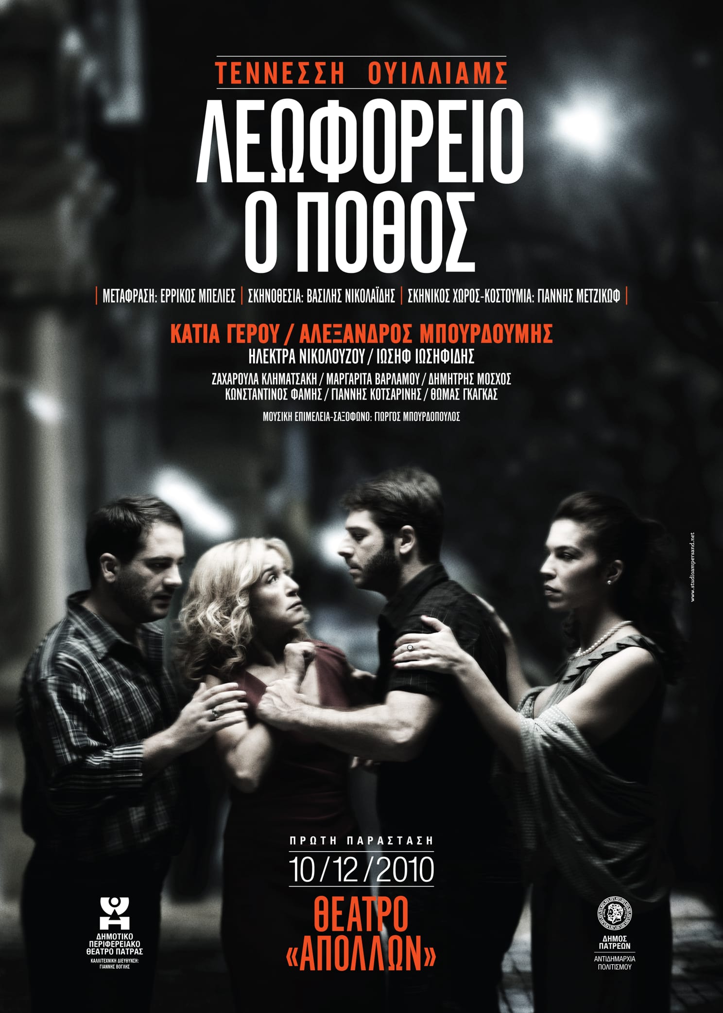 Το Δημοτικό Περιφερειακό Θέατρο Πάτρας παρουσιάζει το έργο του στο θέατρο Απόλλων της Πάτρας, την Παρασκευή 10 Δεκεμβρίου 2010 και ώρα 21:30.
