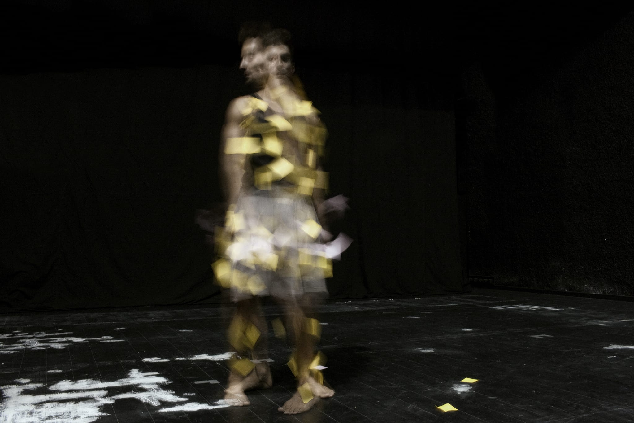 To ‘’Isolation in an Infinite Space’’ είναι µια Πράξη για τη θρυµµατισµένη αστική συνείδηση, µια κατάδυση στα µονοΠάτια ενός εσωτερικού µονολόγου, υΠοβάλλοντας τον στοχασµό Πάνω στο θέµα της ύΠαρξης. Ερωτήµατα και Προβληµατικές Πάνω στην αΠοµόνωση του ανθρώΠου στην σύγχρονη αστική κοινωνία και Πάνω στον εγκλεισµό Που είτε µας εΠιβάλλεται αΠό τους άλλους, είτε συµβαίνει στο µέτρο της ΠροσωΠικής µας εΠιλογής. Ο performer, µε σύνθετες κινήσεις και διαρκείς εναλλαγές, σχεδιάζει γεωµετρικές γραµµές Που µετατρέΠονται Προοδευτικά σε µια σΠασµωδική κίνηση.
