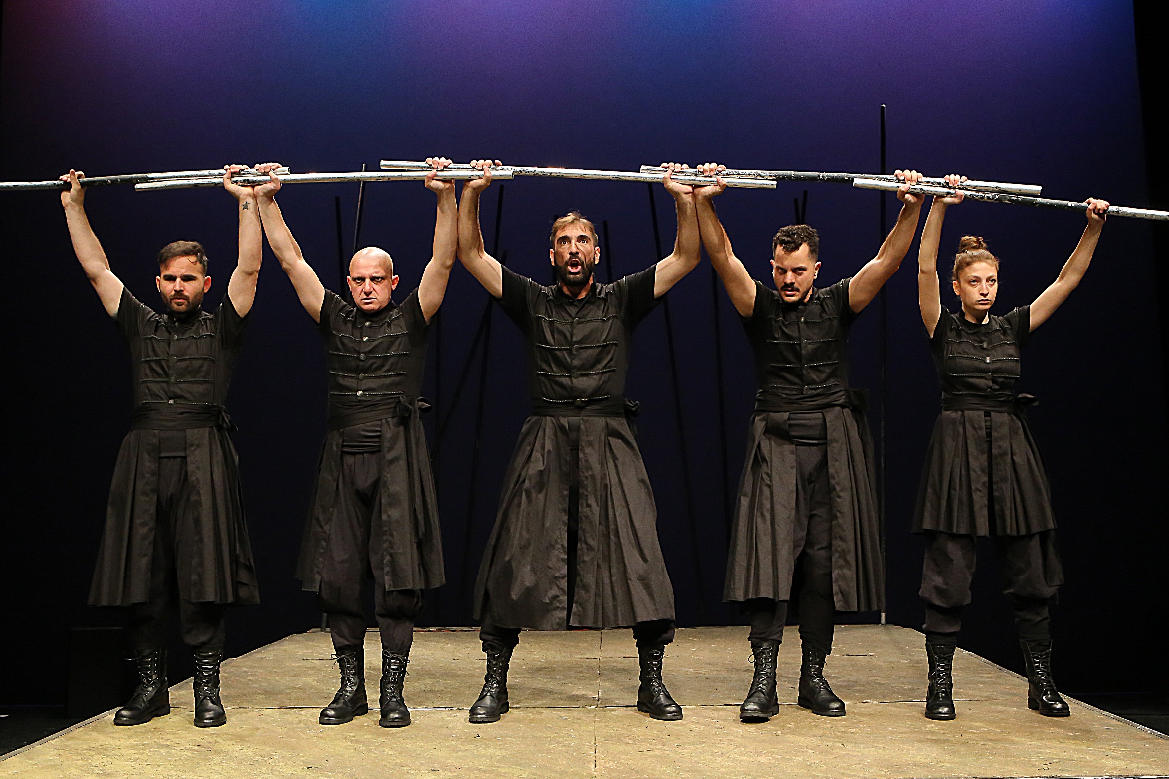 Επί σκηνής βλέπουμε την αγωνία και το πάθος των ηρώων, να δίνουν μάχες σώμα με σώμα, παιδιά να συμμετέχουν στις μάχες με πετροπόλεμο, γυναίκες να βοηθούν